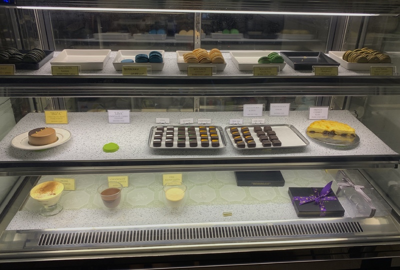 ケーキ、チョコレート、マカロン、アイスクリーム、お茶(紅茶・ハーブティー・チャイティー)、ココアがあります。
