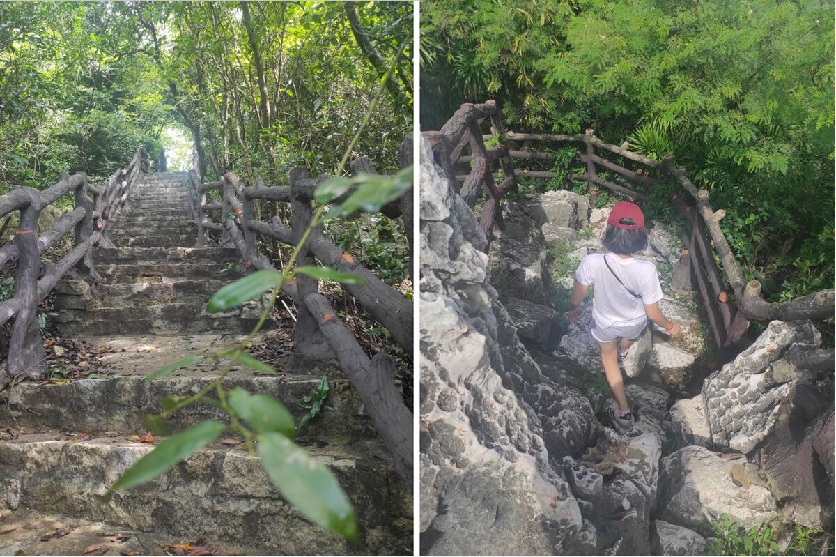 二つほど洞窟があり、さらに奥には展望台に上がれる人一人がかろうじて通れる岩場があります。