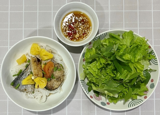 「マグロ煮込みつけ麺(bún cá ngừ)」は簡単につくれることから、ご飯の気分ではない日にはよく食べる料理です。