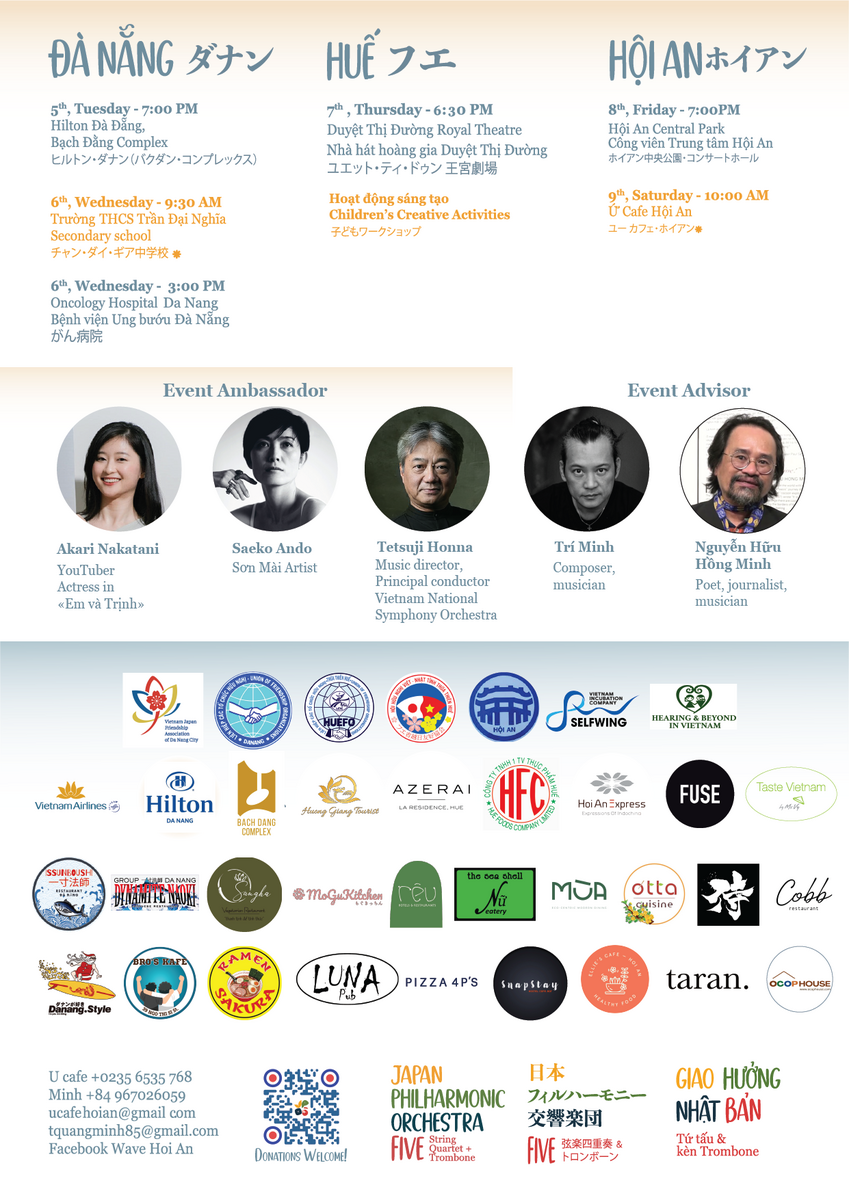 ベトナム、中部のフエ・ダナン・ホイアンの3都市にて、2023年9月5日~9日に、日本フィルハーモニー交響楽団(JPO)による弦楽四重奏&トロンボーンの公演が行われます。
