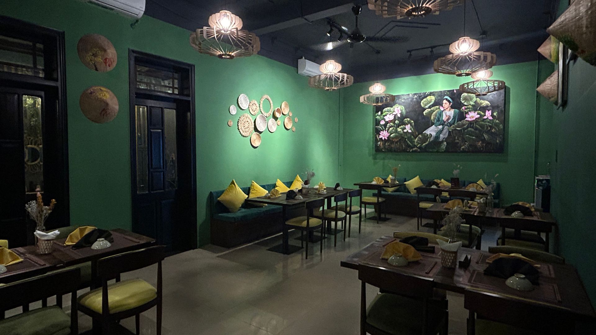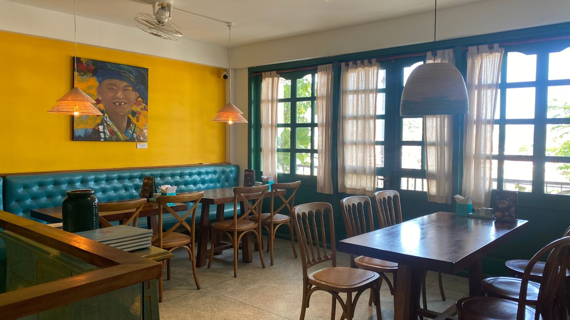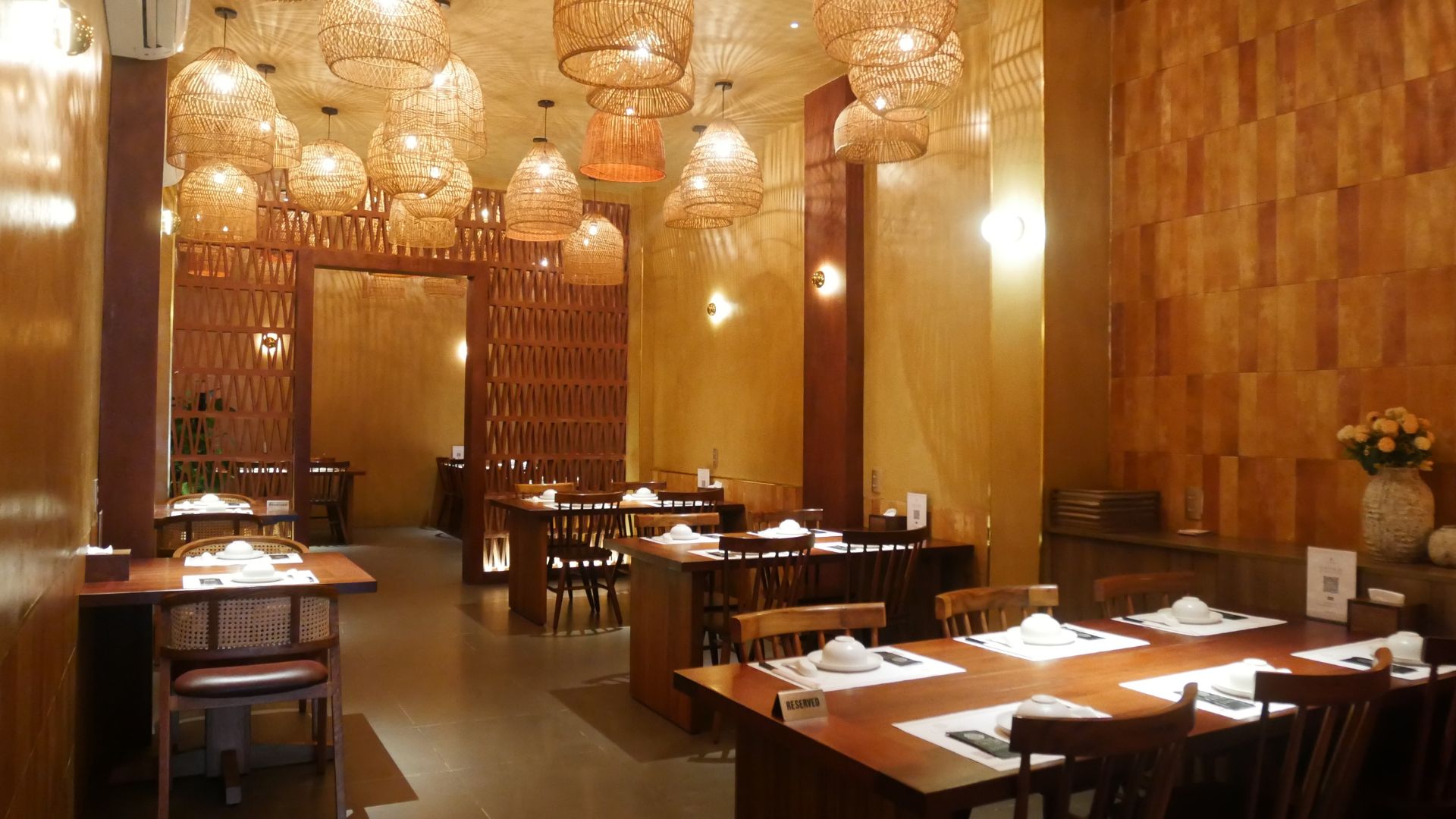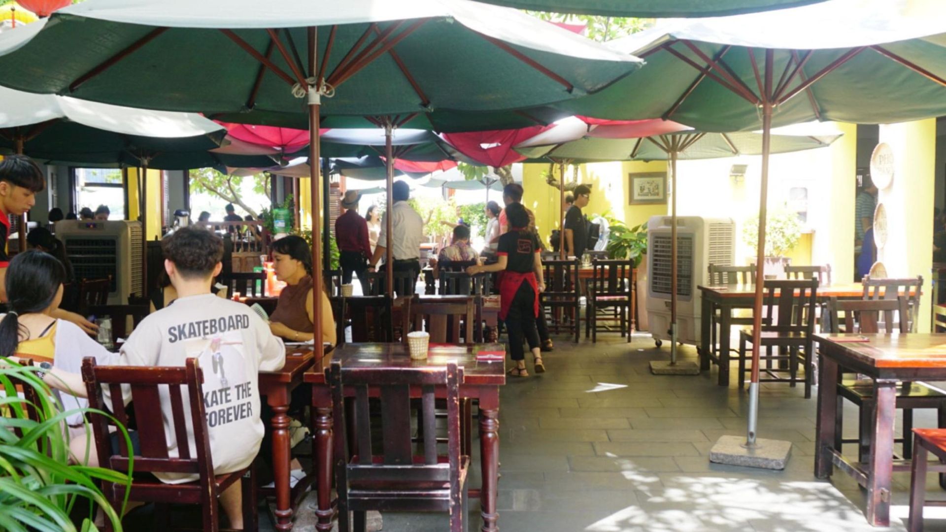 黄色をベースとしたホイアンの雰囲気を持ち、店内は屋根のあるオープンスペースとエアコンの効いたお部屋の2パターン。