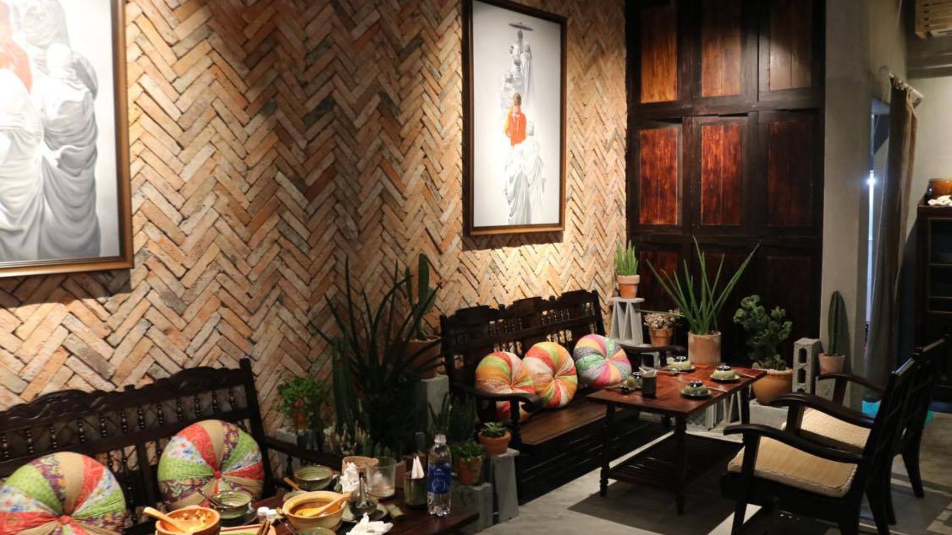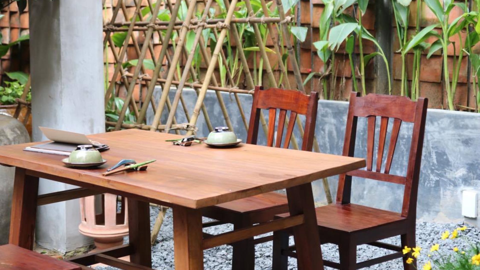 温かみのあるレンガの壁が特徴的で隠れ家のような落ち着く雰囲気があり、屋外での食事も楽しむことができます。