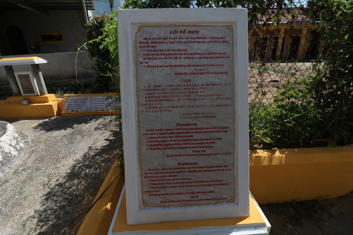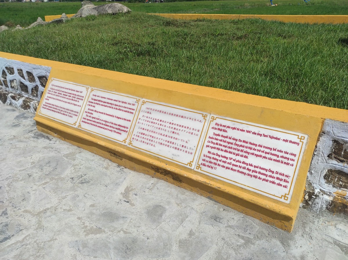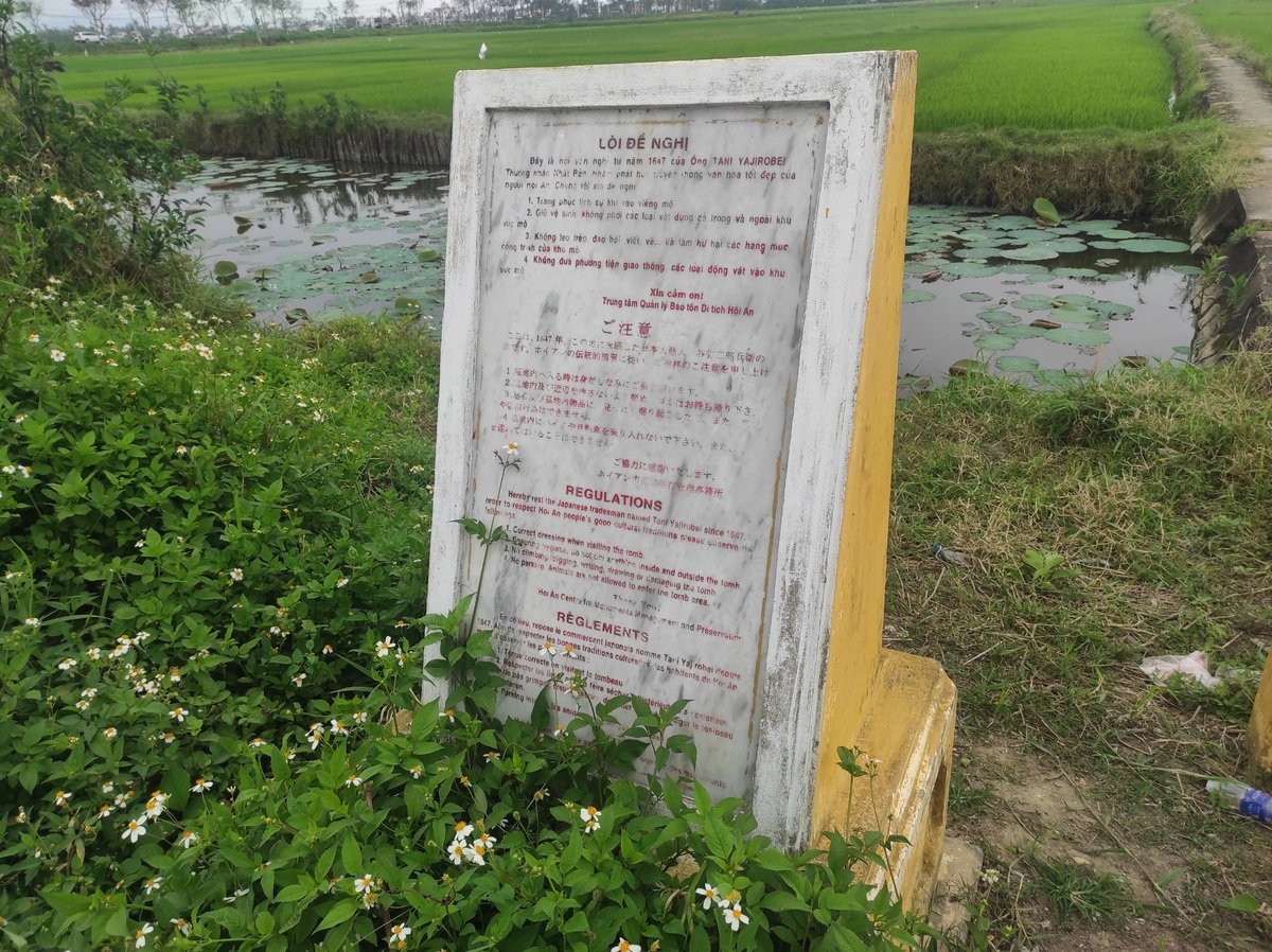 言い伝えによれば、彼は江戸幕府に外国貿易禁止令に従って日本に帰国することになったが、彼はホイアンの恋人に会いたくてホイアンに戻ろうとして倒れた。この彼の墓は母国の方向、北東10度を向いている。この遺跡は17世紀にホイアンが商業港として繁栄していた当時、日本の貿易商人と当時の市民との関係が大変友好的であった事の証である。」