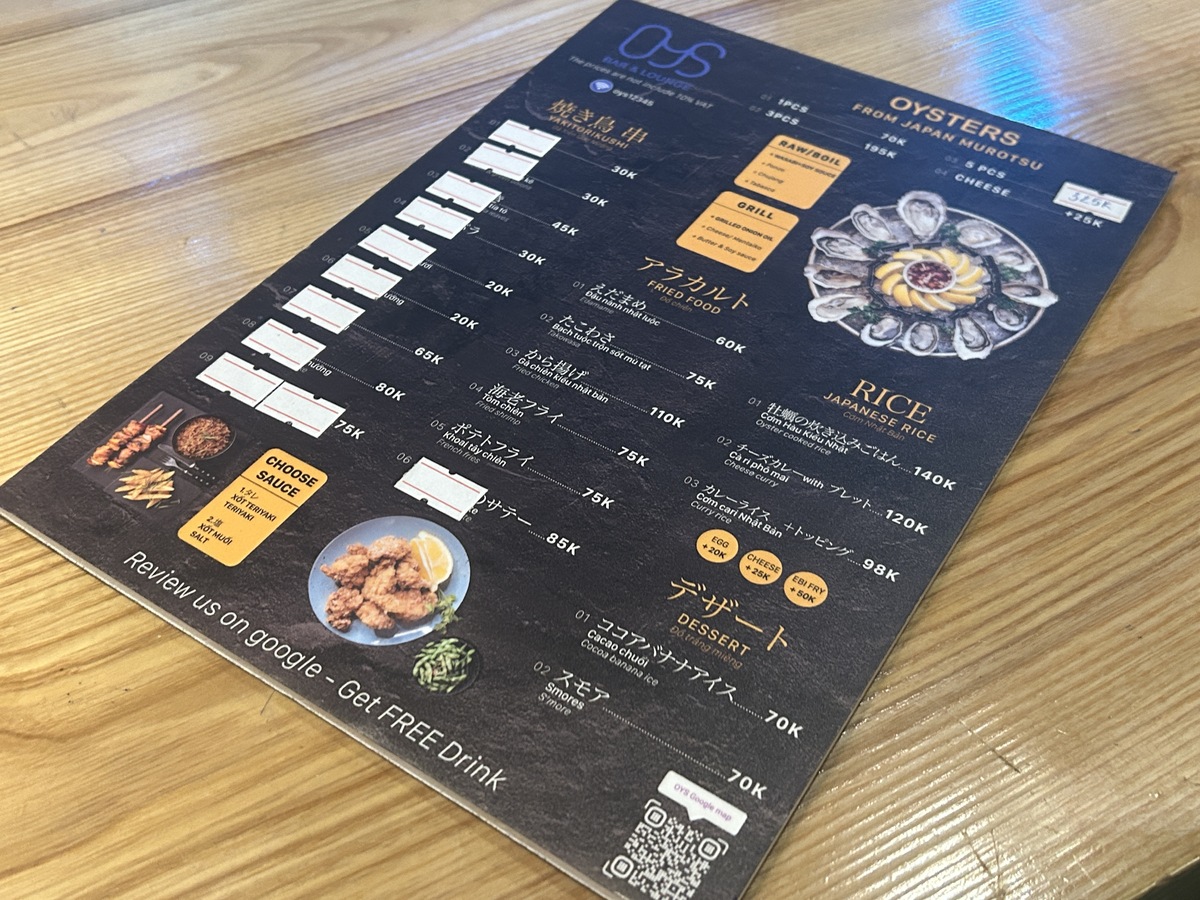 美味しいオイスターやタパスと共に豊富なお酒を楽しめる日系バーはダナンでもここだけ!