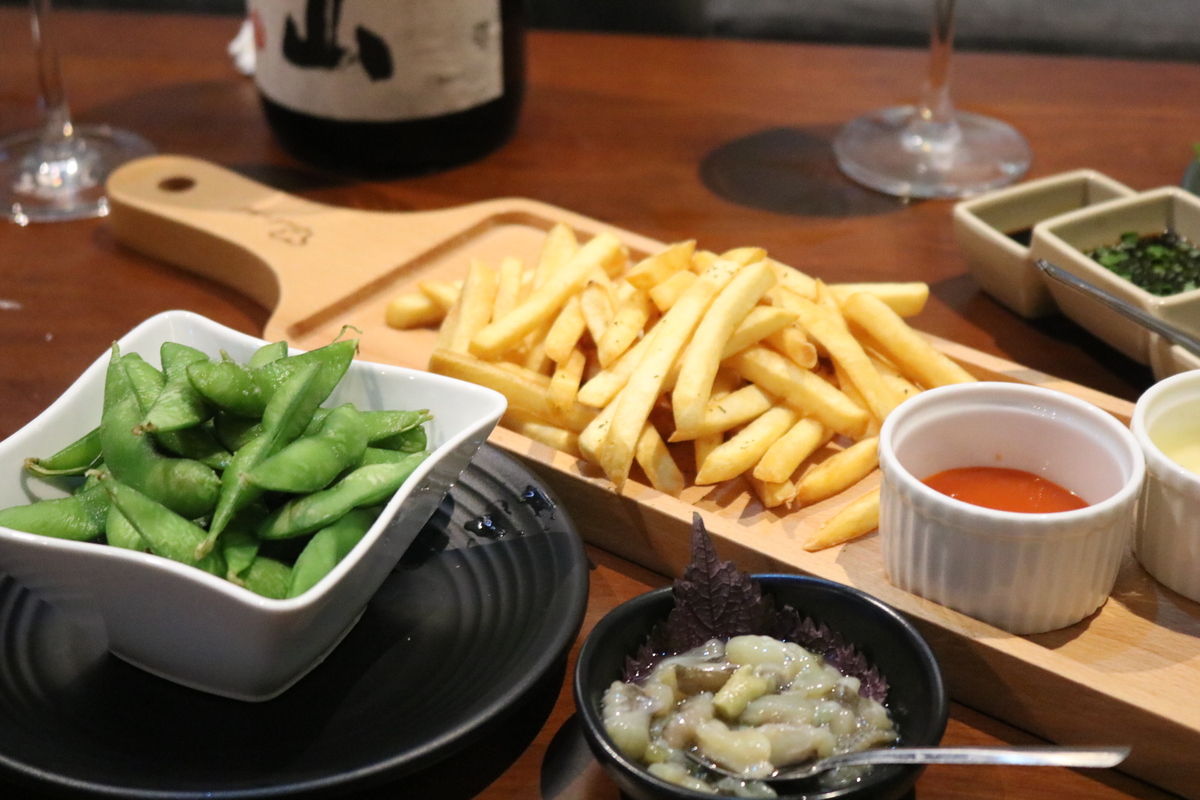 オイスのメニューには日本産の牡蠣をはじめとし、枝豆、たこわさなどのタパスメニューを取り揃えています。