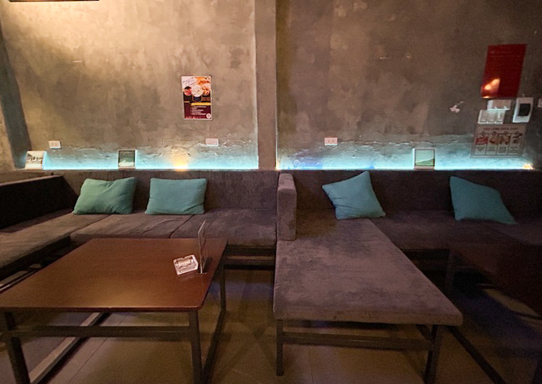 中央には大型スクリーンもあり、いい感じで音楽が流れていて居心地の良い雰囲気を演出しています。