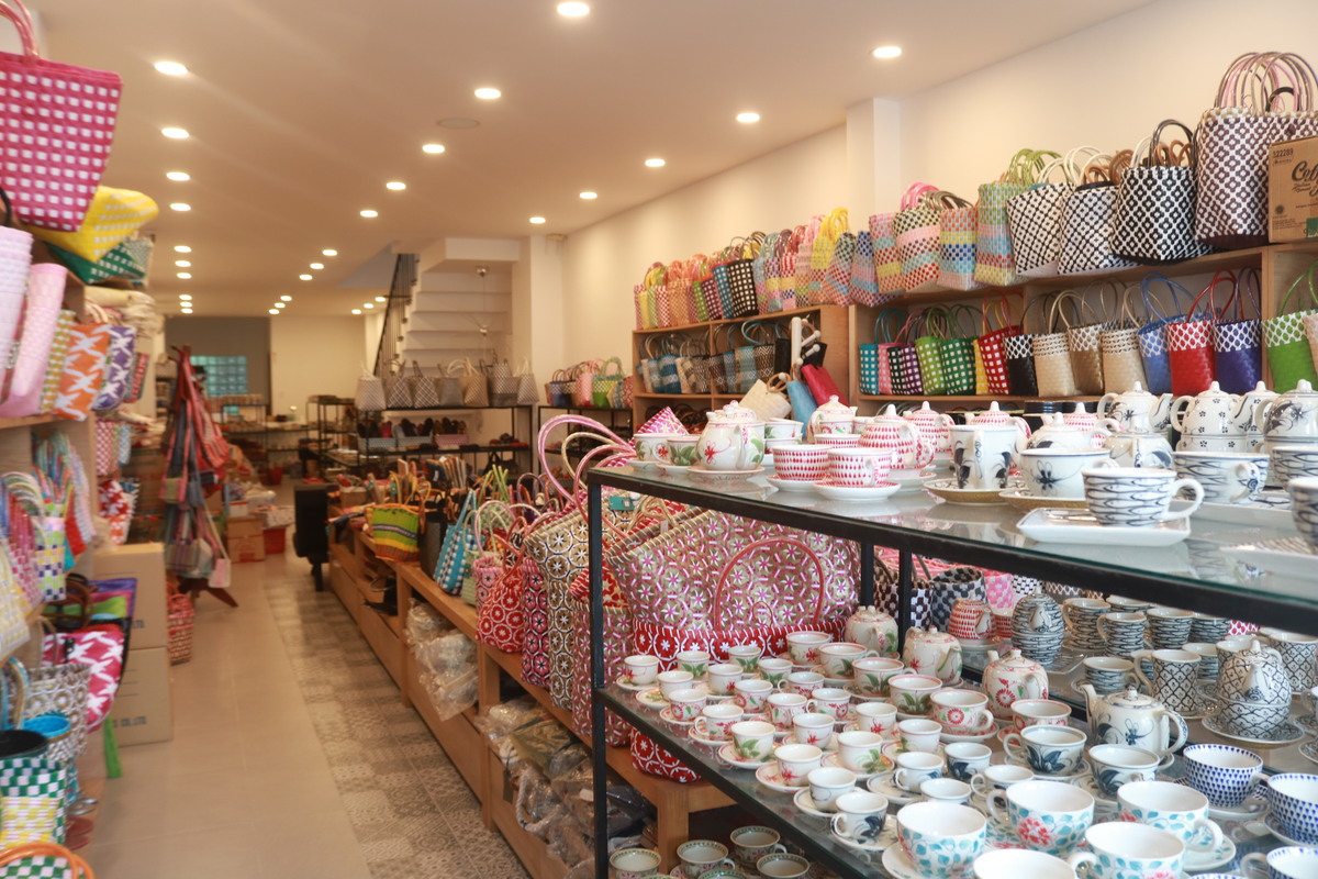ベトナム食器を中心とした品ぞろえでワンフロアでさくっと見て周ることができます。