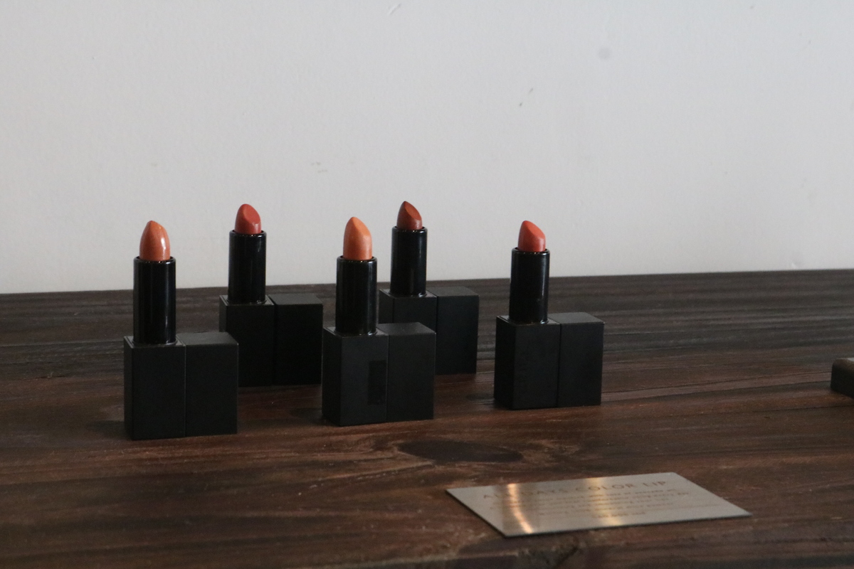 店内には、フェイスに使用できる、石鹸、タマヌオイル、バーム、口紅などを販売。