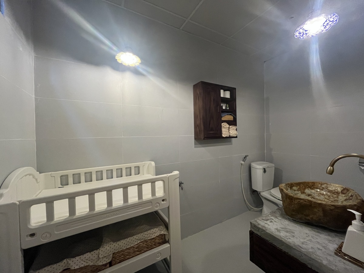お店のお手洗いには、ベトナムでは珍しいおむつ交換台と専用ごみ箱も設置しており、ファミリー層の旅行者の方にも安心してご利用いただけます。