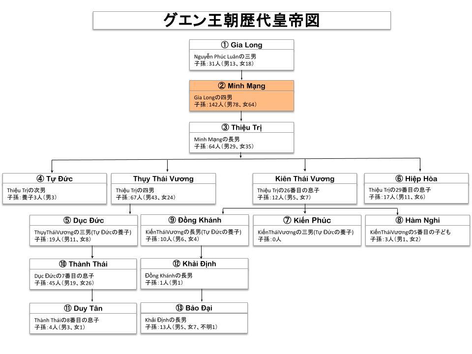 ✓最長の在位期間(1819~1841年)を持つグエン朝の王。