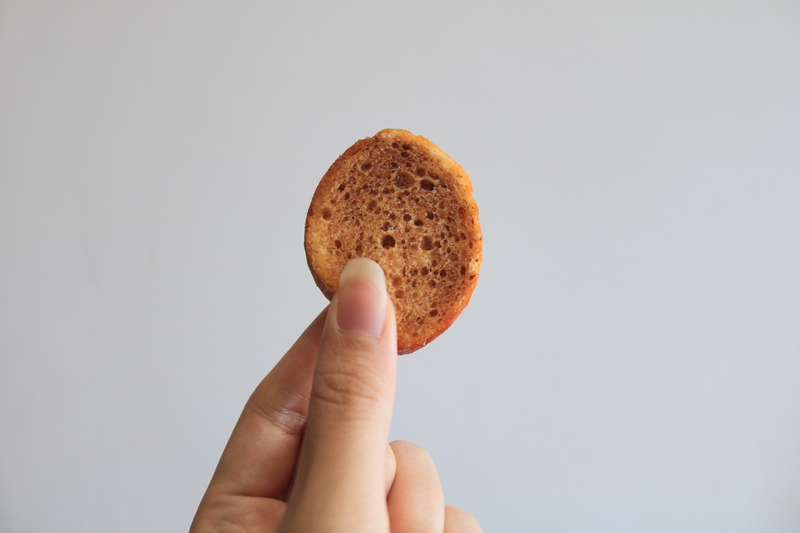 ベトナムで馴染み深いフランスパンを1cm程度に切り、焼いたラスクです。