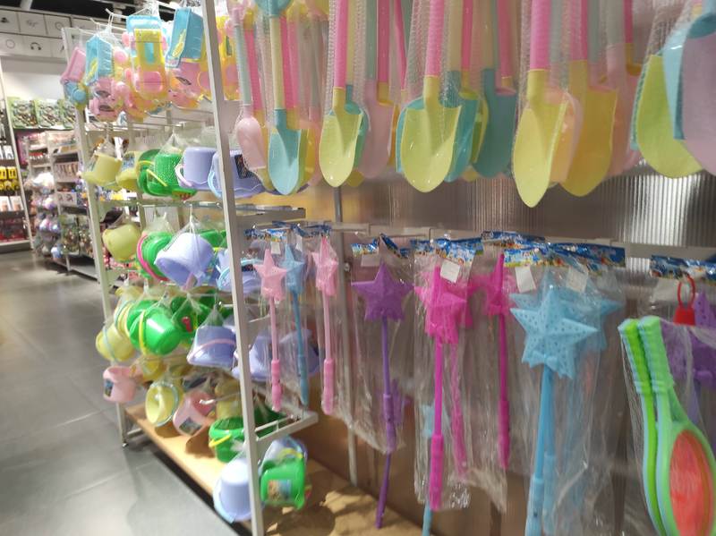 子どものグッズ売り場は特に100円均一商品とそうでないエリアが入り組んでいました。なんだか策略が見え見えで、いい意味でずるいなと感じる構造です。