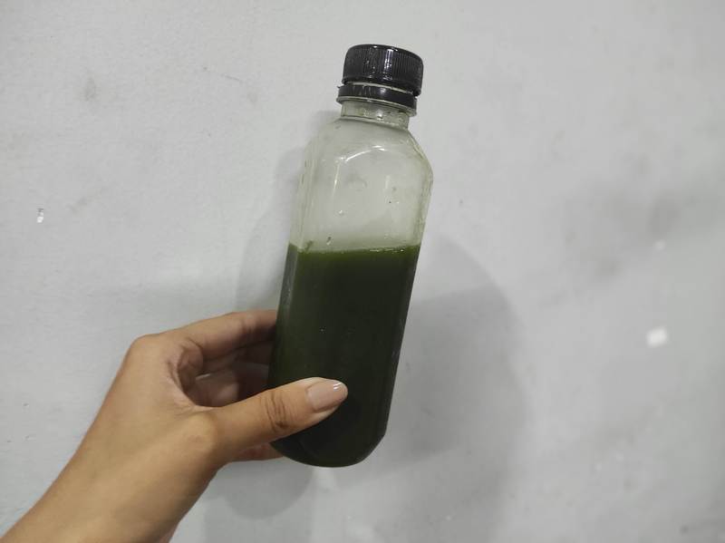 緑豆は、数時間で水に浸かした後に茹で、ミキサーにかけて、汁のみをパイナップル葉っぱ、練乳や砂糖などと一緒に煮て出来上がります。