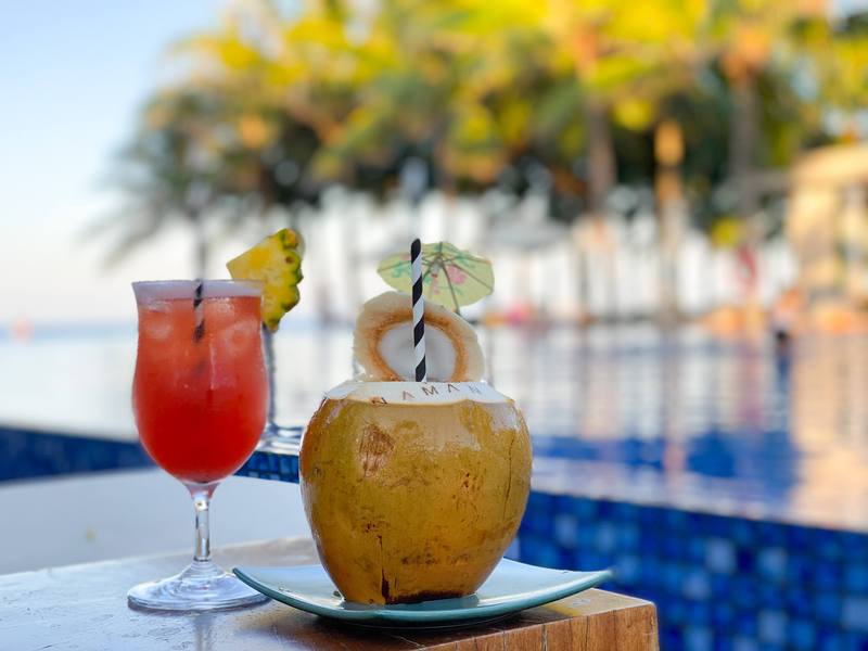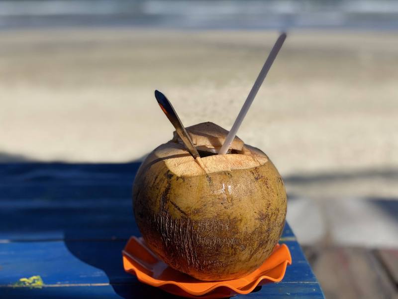 ココナッツの中の果肉もスプーンで取りながら頂くのですが、実自体があまり熟れていないココナッツの方が内側の身が厚く美味しく、ココナッツウォーター自体も甘さを感じられます。
