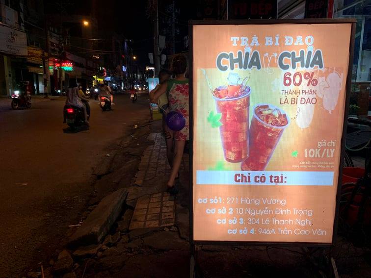 専門店(ローカル)で販売されていることが多いです。飲み物の名前「Trà bí đao hạt chia」でGoogle検索するとお店を見つけることが出来ます。