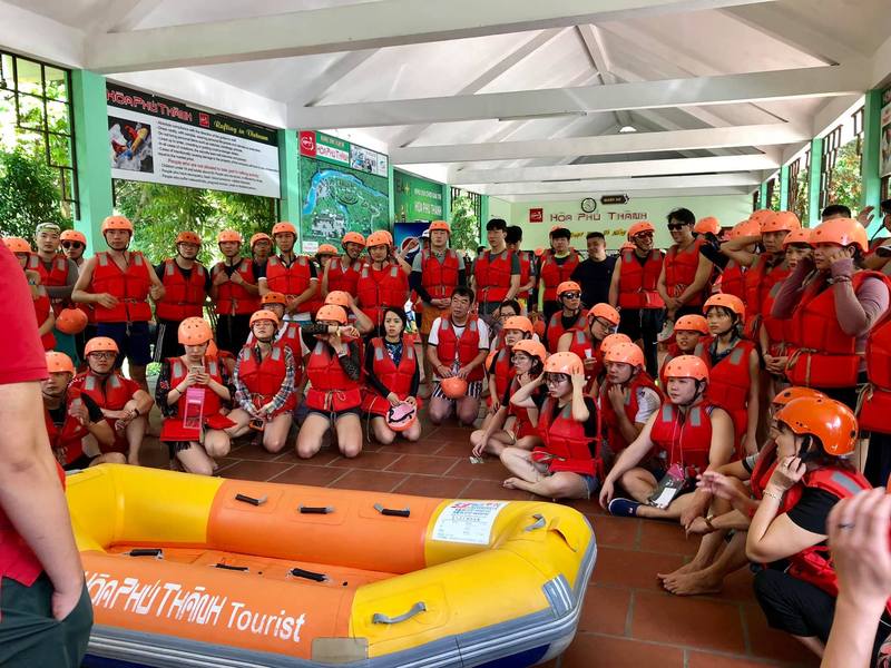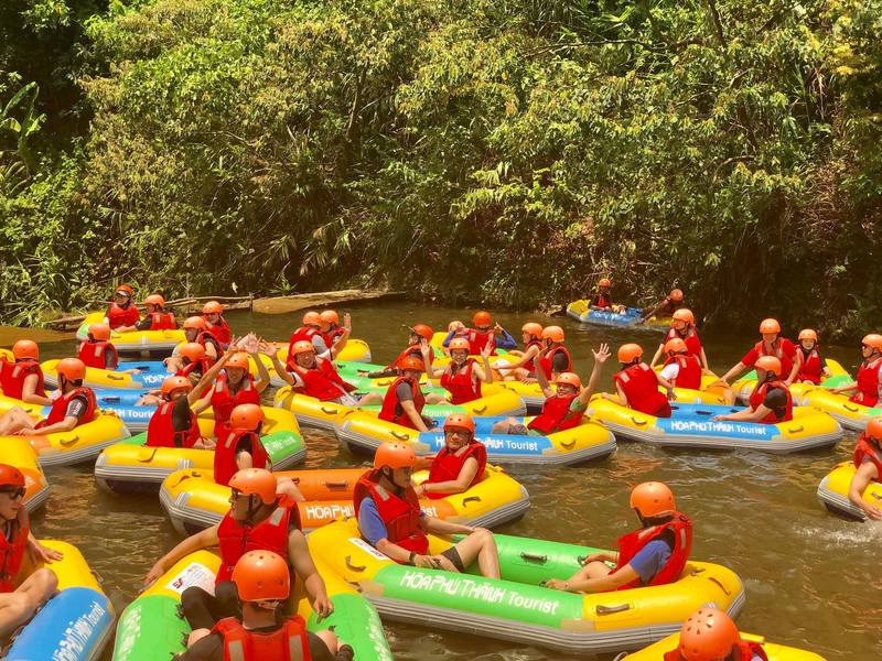 Hoa Phu Thanhではジップライン、渓流下り、フィッシュフットマーサージを楽しむことができ、川と山々を見ながらくつろぐことができます。