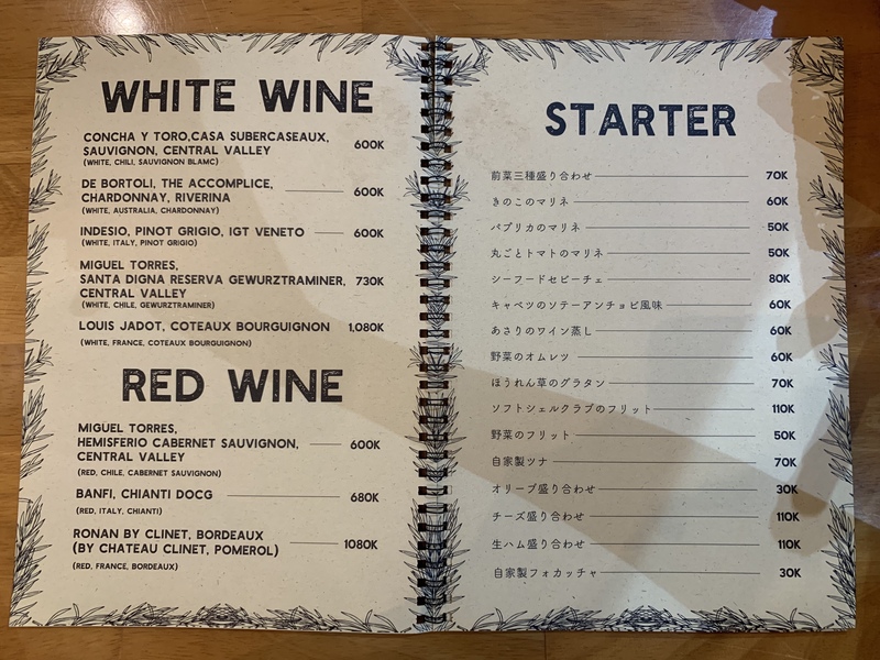 (ハーフサイズ80.000VND、グラスワイン80.000VND)