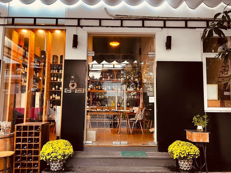 コルク&ボトルはワインショップなのですが、2階建てで外や2階でワインや簡単なコールドカットも頂くことができるお店です。